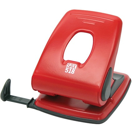 metalowy mechanizm, metalowa obudowa zdolność dziurkowania: do 40 kartek ogranicznik formatu: A4/US/A5/A6/888 2 dziurki średnica dziurki: 5,5mm odstęp pomiędzy dziurkami: 80mm certyfikat bezpieczeństwa GS 10 lat gwarancji kolor czerwony