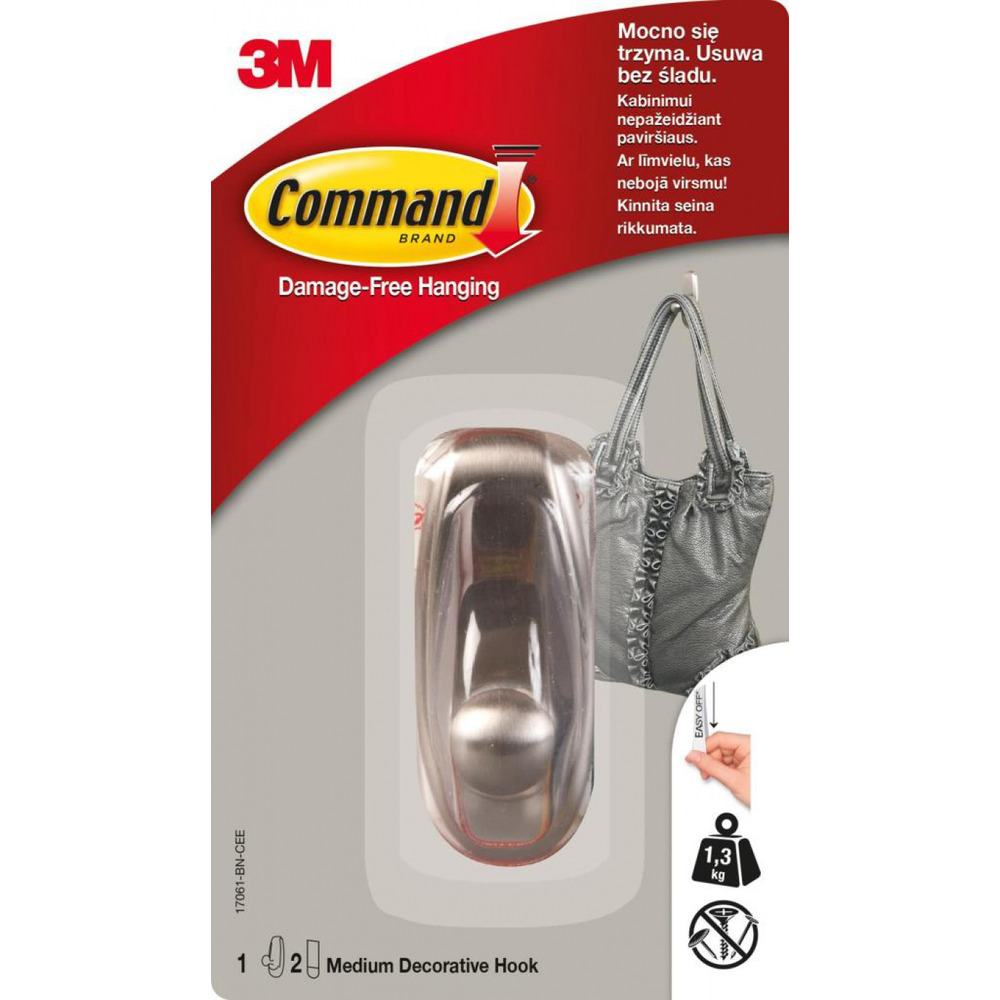 Hak COMMAND (17061BN), metalowy, średni, srebrny