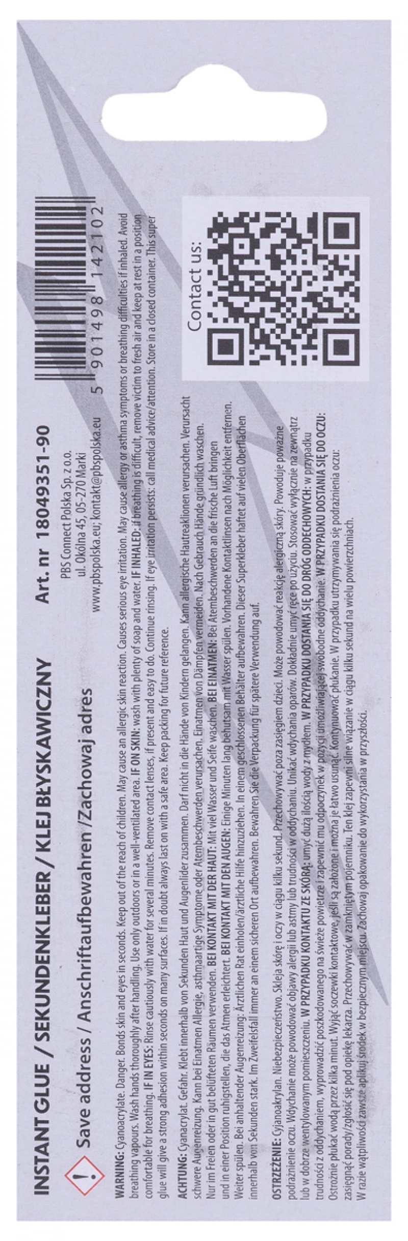klej błyskawiczny, zawiera cyjanoakrylan