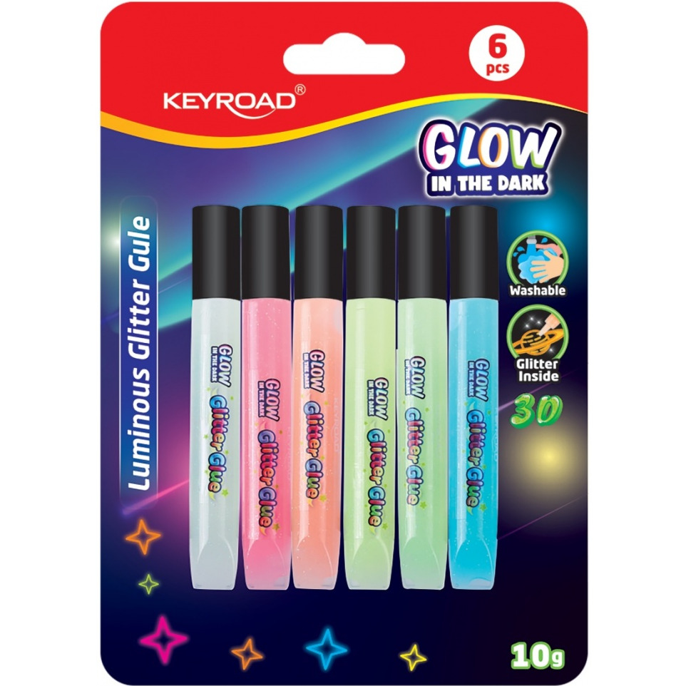 Klej brokatowy KEYROAD Luminious, fluorescencyjny, 6x10ml, blister, mix kolorów