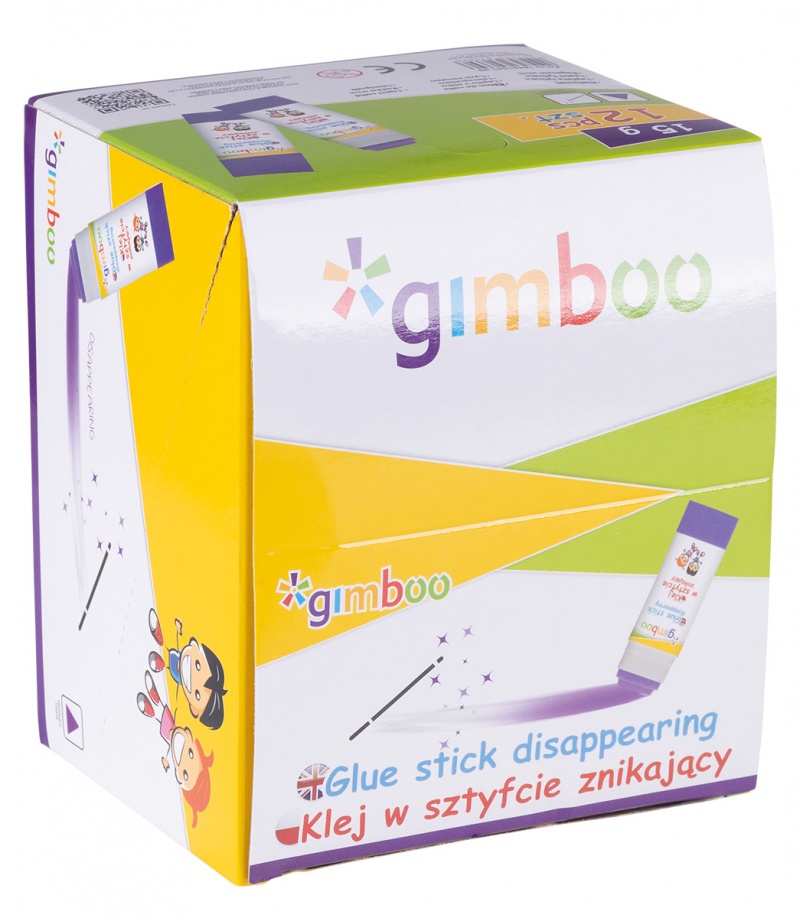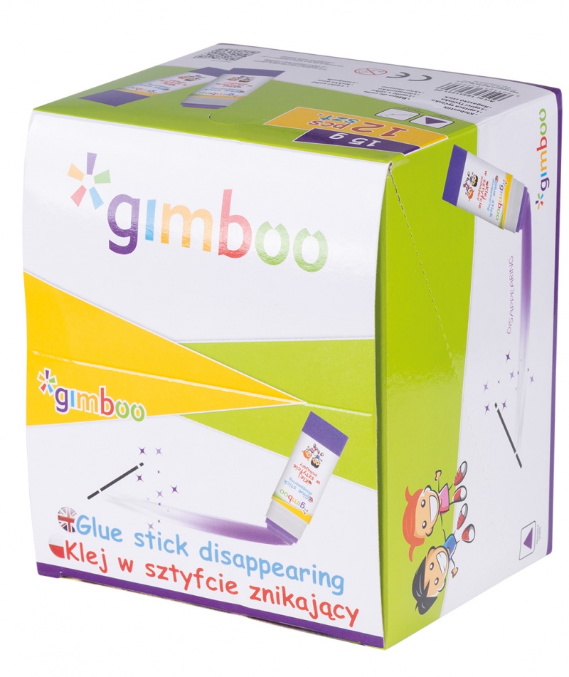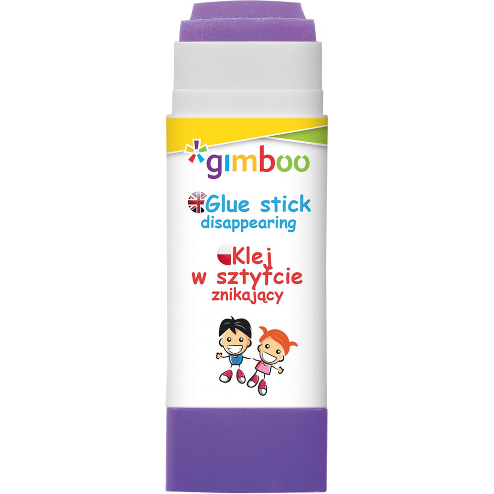 Klej w sztyfcie GIMBOO, PVP, trójkątny, znikający, 15g, 1 szt., pakowany w displayu, fioletowy