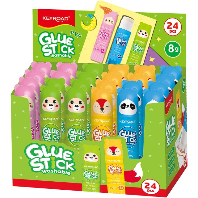 Klej w sztyfcie KEYROAD Fancy, PVP, 8g, display, mix kolorów