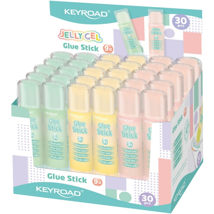 Klej w sztyfcie KEYROAD Jelly Gel, przezroczysty, 9g, display, mix kolorów