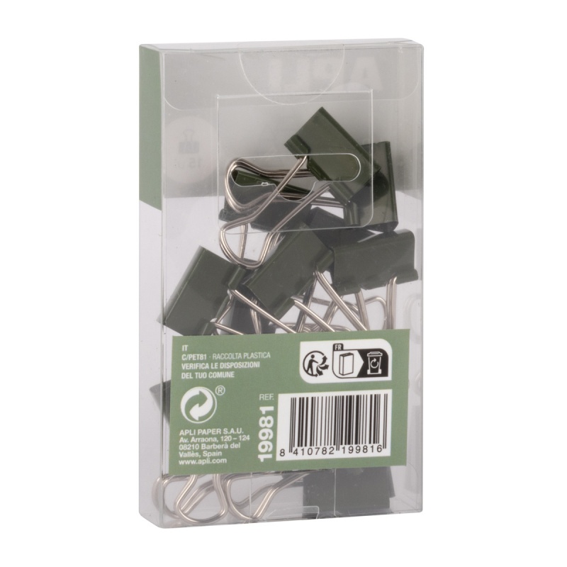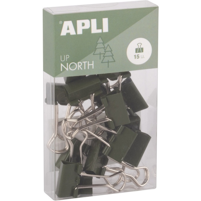 Klipy do dokumentów APLI Up North, 19mm, 15szt, pudełko z zawieszką, khaki