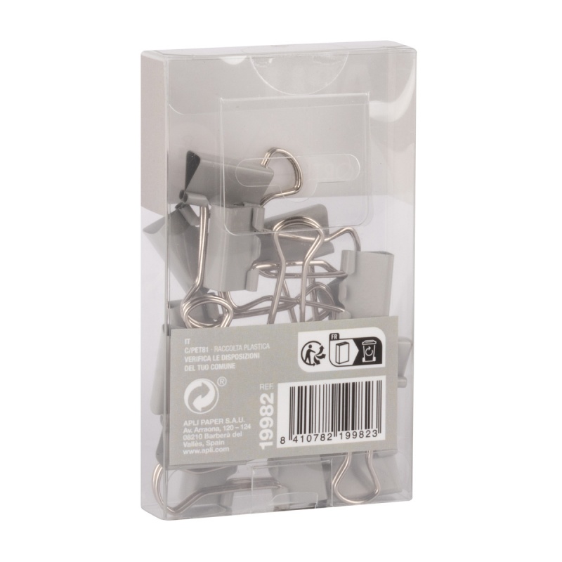 Klipy do dokumentów APLI Up North, 19mm, 15szt, pudełko z zawieszką, szare
