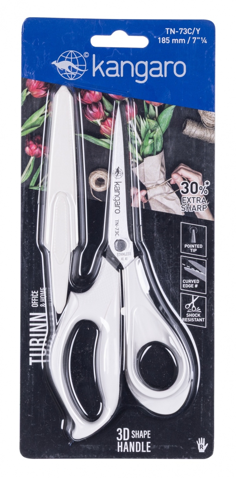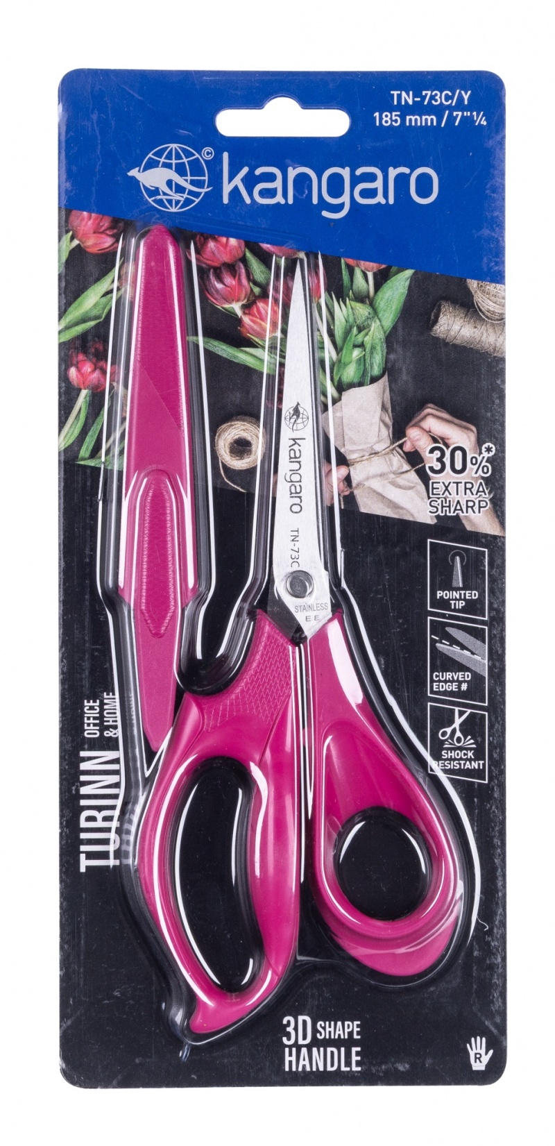 Nożyczki biurowe KANGARO, 18,5 cm, z osłoną, dla praworęcznych, blister, mix kolorów