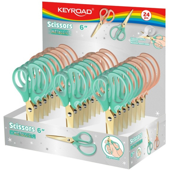 Nożyczki KEYROAD Metallic, powłoka tytanowa, 15,5 cm, display, mix kolorów