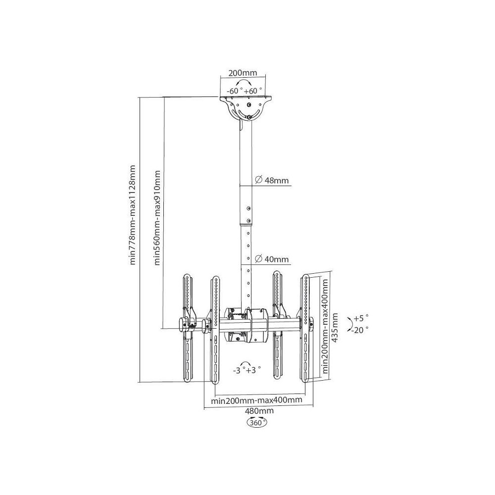 Umożliwia bezpieczny montaż sufitowy dwóch wyświetlaczy LED/LCD/PDP lub TV Montaż...