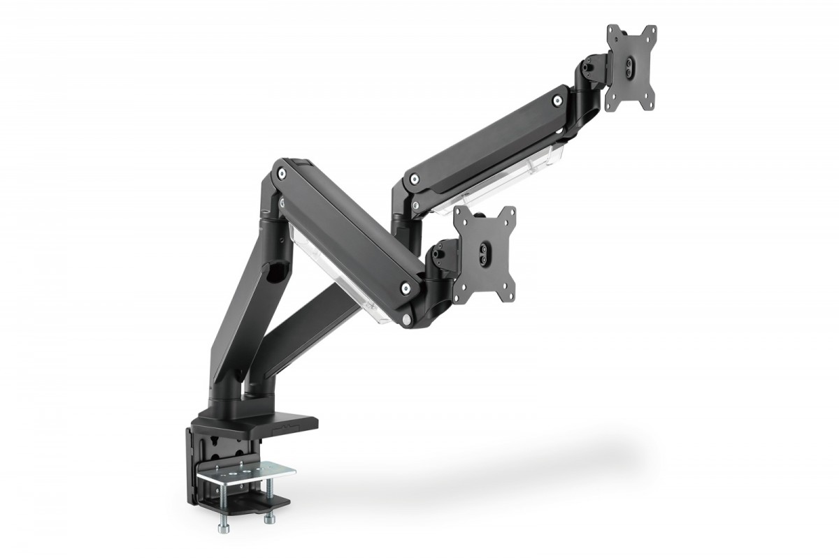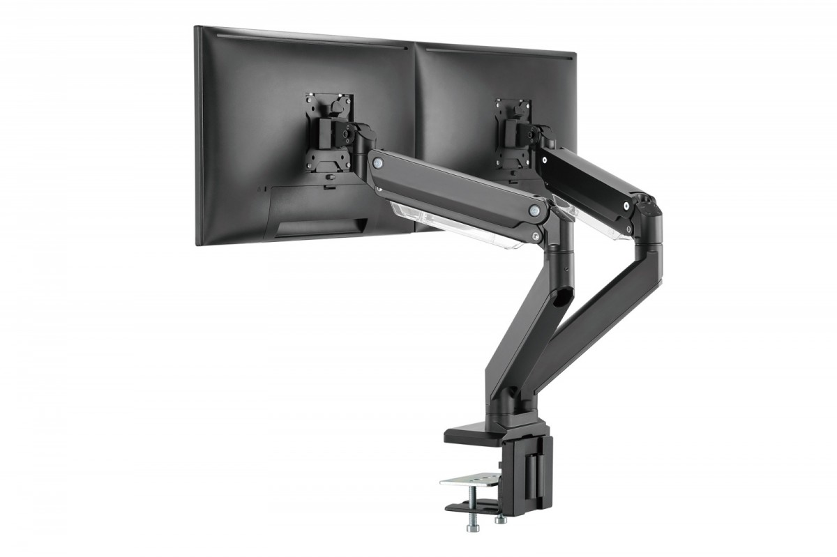 Ramię biurkowe podwójne z zaciskiem, 2xLCD, max. 35", max. obciążenie 2x15kg, ze sprężyną gazową