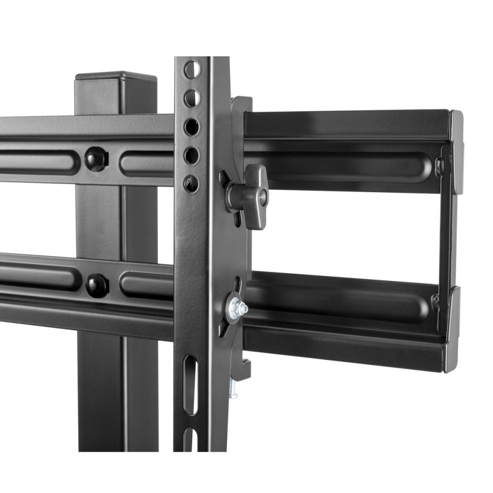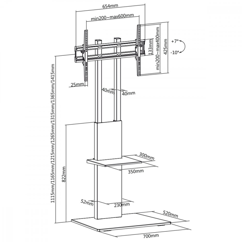 Uniwersalny stolik stand z uchwytem do montażu telewizorów LED, LCD, plazma, monitorów o wadze do 40 kg. Na wkomponowanym w stoliku uchwycie możemy zawiesić telewizor od 37 - 70 cali o maksymalnym rozstawie śrub 600mm na 400mm. Uchwyt malowany jest metodą proszkową - dzięki takiej metodzie jest odporny na korozje i zarysowania. Wbudowana półka umożliwia montaż opcjonalnych akcesoriów takich jak DVD, amplituner, tablet, laptop, konsolę itp. Podany rozmiar ekranu jest tylko propozycją. Na uchwyt standu można zamontować większy telewizor, monitor gdy nie przekracza on maksymalnej wagi oraz mieści się w podanym standardzie VESA. Do uchwytu bez problemu przymocujemy ekran w standardzie VESA: 200x200, 300x200, 300x300, 400x200, 400x300, 400x400, 600x400 Kompatybilny z telewizorami LED, LCD, PLAZMA: Sony, LG, Samsung, Philips, Sharp, Panasonic, Toshiba, Grundig, Pioneer, JVC, Benq, Sanyo, NEC, Hyundai, Hitachi, Asus, Thomson. Stand charakteryzuje się praktyczna konstrukcją, bardzo prostym montażem oraz bardzo szeroką gama telewizorów które możemy na nim zamocować. Wyposażony jest w system maskowania przewodów oraz solidną podstawę zapewniającą stabilność. Idealny stolik do sal konferencyjnych, na lotniska, wyświetlaczy publicznych lub innych profesjonalnych prezentacji. Do zestawu dołączone są śruby, niezbędne do prawidłowego montażu oraz obrazkowa instrukcja montażu.