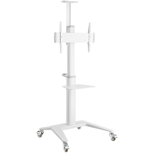 Aluminiowy statyw podłogowy pod telewizor z kółkami Caster, 37 " - 70", Biały Wytrzymała stalowa konstrukcja ze zintegrowaną regulacją wysokości telewizora Praktyczna półka z regulowaną wysokością dla sprzętu lub kamery Trwałe kółka z mechanizmem blokującym i praktycznym uchwytem D-Ring dla łatwego przemieszczania Obsługuje większość telewizorów LCD 37 - 70 VESA kompatybilne Max. 600 mm x 400 mm