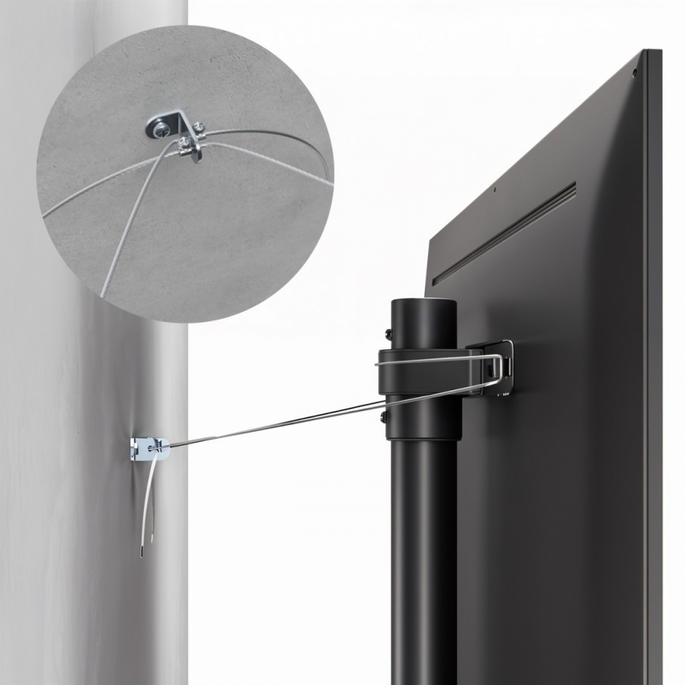 Wytrzymała podstawa zapewnia stabilność i bezpieczeństwo, eliminując ryzyko przewrócenia się ekranu. Dodatkowo ergonomiczny design stojaka pozwala na łatwe dopasowanie go do różnych aranżacji wnętrz, a 4-stopniowa regulacja wysokości oraz regulacja obrotu sprawiają, że użytkownik może dostosować pozycję telewizora do swoich potrzeb. Stojk wyposażony jest w system zarządzania kablami, co pozwala na zachowanie porządku i estetyki. Idealny do sal konferencyjnych, wystaw targowych, na lotniska, jak również do domu. Do zestawu dołączone są śruby niezbędne do prawidłowego montażu oraz obrazkowa instrukcja montażu.