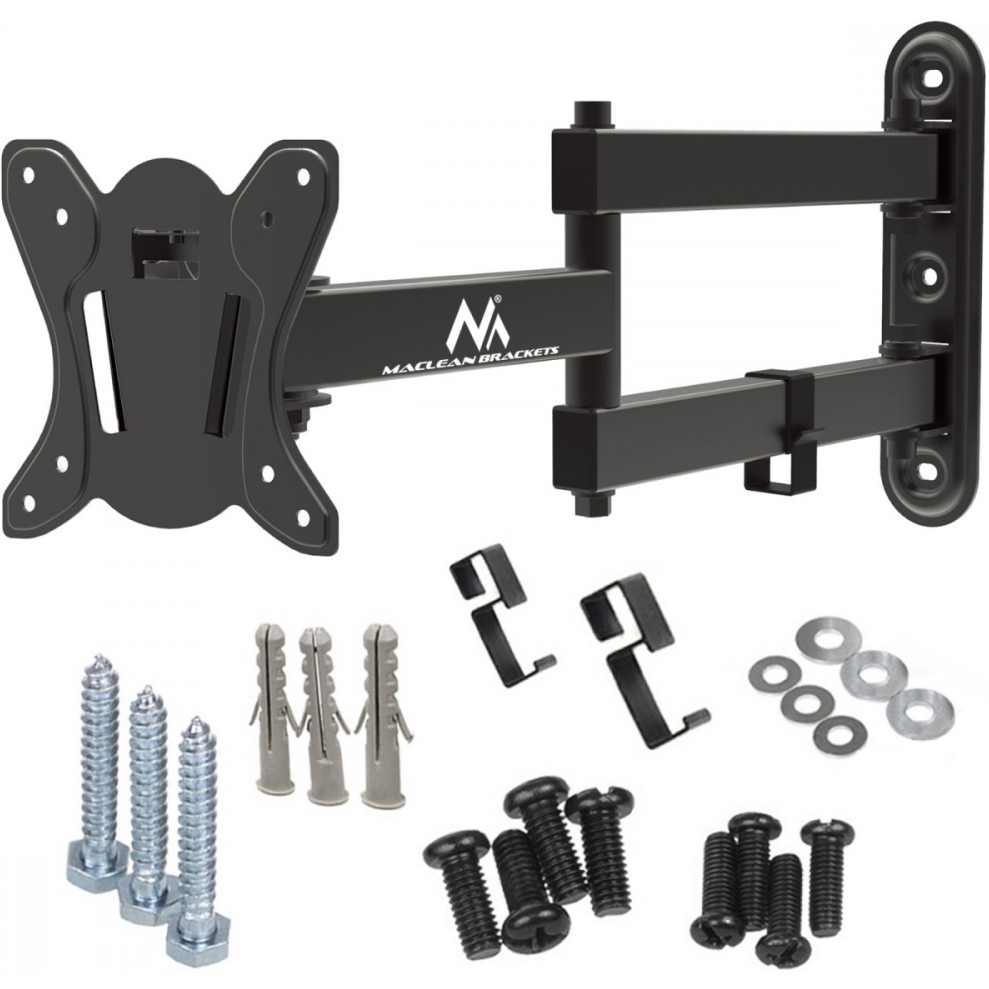 Pozostałe parametry: Producent: Maclean Model: MC-417 Możliwość regulacji stopnia nachylenia: -12° do +3° Możliwość regulacji obrotu: -90° do +90° Lakierowanie proszkowe Regulowana odległość od ściany: 65-408 mm Przeznaczony dla TV 13" do 32" (lub większych, jeśli ich waga nie przekracza 30 kg, a standard VESA jest zgodny z uchwytem) W komplecie zestaw śrub montażowych do ściany, jak i do przykręcenia telewizora oraz instrukcja montażu