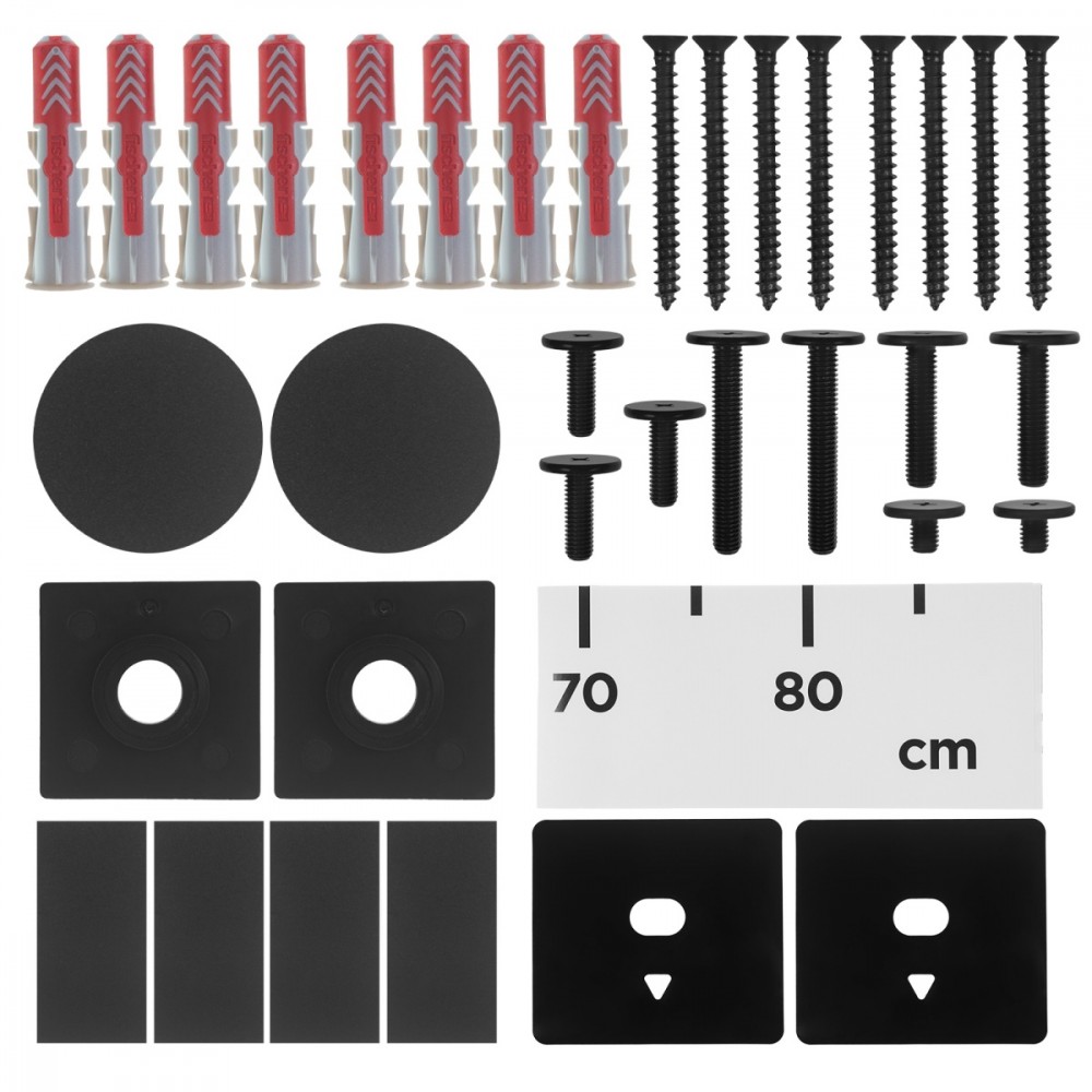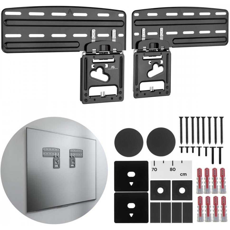 Akcesoria w zestawie: Uchwyt do TV Maclean MC-806 N Zestaw śrub montażowych do ściany oraz do przykręcenia telewizorów Akcesoria montażowe Instrukcja montażu Opakowanie producenta