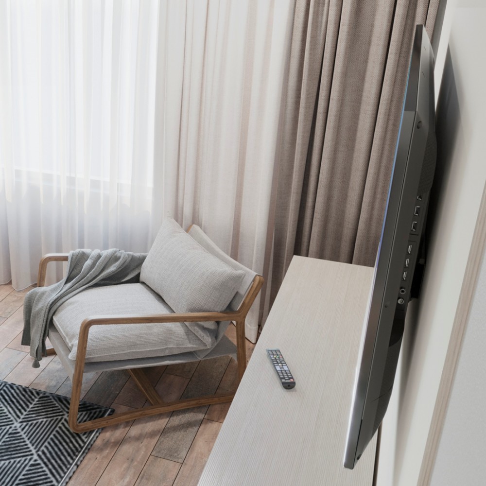 Przy wykorzystaniu tego uchwytu na telewizor możesz zawiesić odbiornik bardzo blisko ściany. Pozwala to na nowoczesną aranżację pomieszczenia oraz oszczędność miejsca. Takie mocowanie eksponuje jedną z największych zalet Twojego telewizora super płaski profil.
