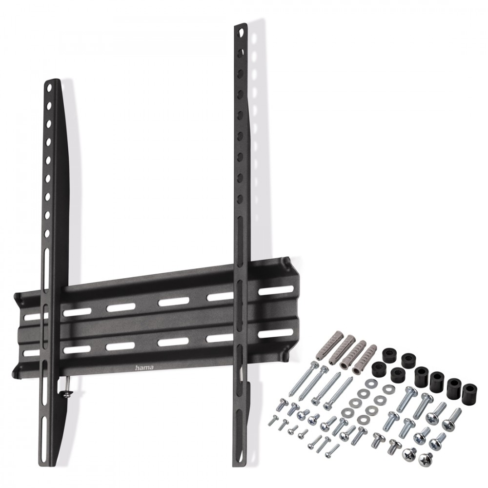Wraz z uchwytem do telewizora Hama Fix otrzymujesz zestaw montażowy, w tym kołki renomowanej marki Fischer, poziomnicę oraz instrukcję montażu. To pozwoli Ci na sprawne zamocowanie uchwytu tv na ścianie.