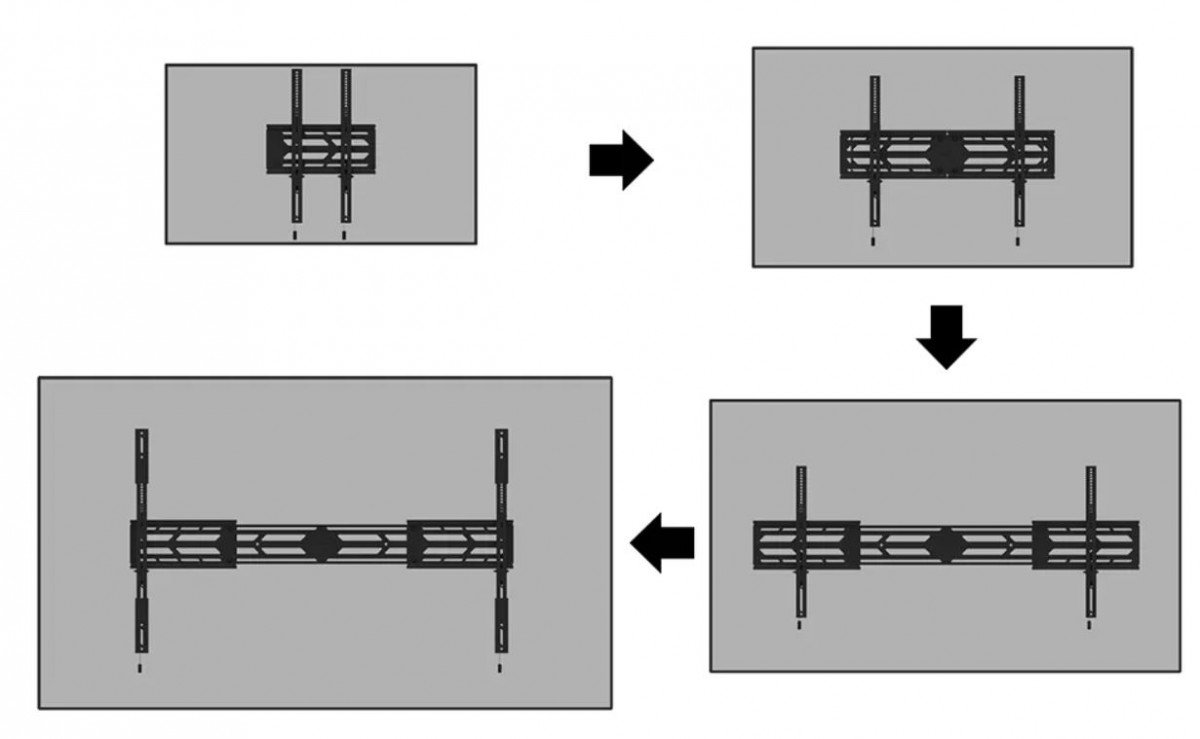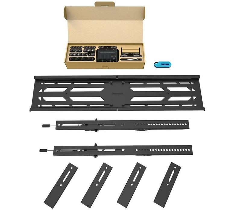 WL30S-950BL19 ma głębokość 6,5 cm i dzięki dołączonym pionowym wspornikom przedłużającym nadaje się do ekranów zgodnych z otworami VESA od 100x100 do 1500x900 mm. Dzięki unikalnej rozsuwanej konstrukcji uchwyt można dopasować do szerokiego zakresu wymiarów ekranów; od 55" do 110". Istnieje możliwość zablokowania uchwytu za pomocą kłódki (brak w zestawie).