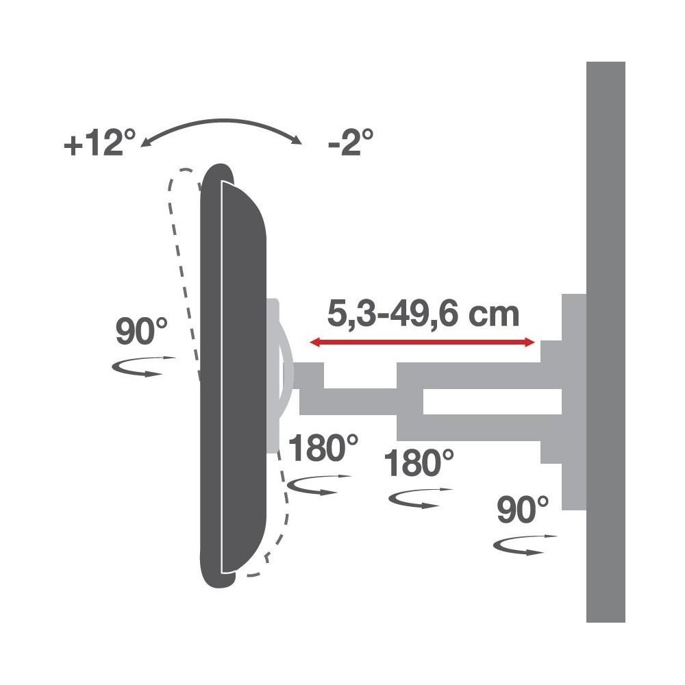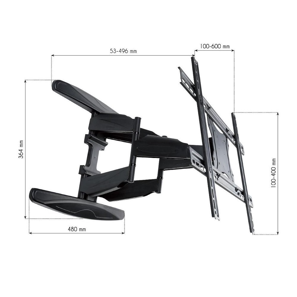 Uchwyt ścienny do TV LCD/LED 40-80cali 50kg VESA pełna regulacja czarny Umożliwia bezpieczny montaż ścienny dużych wyświetlaczy LED/LCD/PDP lub TV Konstrukcja ze stali gwarantuje maksimum bezpieczeństwa Mocowanie wyświetlacza w standardzie VESA Możliwość regulacji odległości wyświetlacza od ściany Możliwość regulacji kąta nachylenia Możliwość regulacji obrotu w płaszczyźnie poziomej Wyposażony w poziomicę ułatwiającą montaż Idealny do zastosowania w domu, w biurze oraz do instalacji komercyjnych