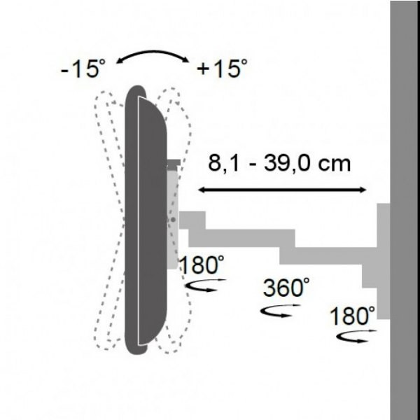 - Dwuprzegubowy wysięgnik z regulacją odległości od ściany