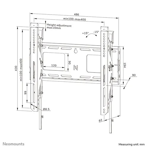 Neomounts WL35-750BL14 LEVEL to najlepsze rozwiązanie z możliwością pochylenia, umożliwiające bezpieczny montaż interaktywnego lub ciężkiego wyświetlacza o przekątnej do 75 cali i maksymalnej nośności 100 kg. Beznarzędziowa regulacja pochylenia (+15°/-15°) umożliwia uzyskanie optymalnego kąta oglądania. Ten wytrzymały uchwyt ścienny ma solidną, profilowaną płytę ścienną i został zaprojektowany z myślą o stabilności i precyzji, zapewniając bezpieczny montaż ekranu nawet na nierównych powierzchniach. Uchwyt ma indywidualne regulowane wsporniki (10 mm) do bezpiecznego regulowania wysokości wyświetlacza lub jego poziomowania.