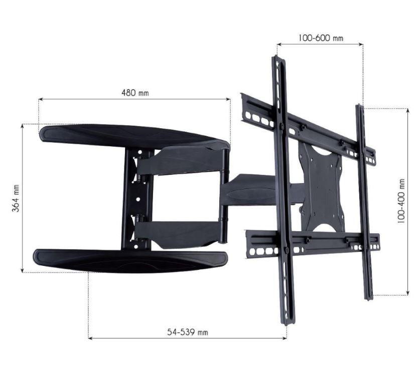 Jego ultracienka konstrukcja ułatwia obsługę i szybkie ustawienie, ale jednocześnie ma solidną konstrukcję, która jest w stanie utrzymać monitor o wadze do 35 kg. Niski profil pasujący do nowych smukłych telewizorów LED Nowy system pochylania umożliwiający regulację kąta od -2 do +12 Ozdobne rękawy na ramionach zapewniają lepsze zarządzanie kablami i ładny wygląd Profil uchwytu odpowiedni do ultracienkich telewizorów LED LCD 40-65" Obsługuje standard VESA do 600x400 mm Maksymalna obsługiwana waga: 35 kg Punkty regulacji ramienia z maksymalnym wysunięciem poziomym 539 mm