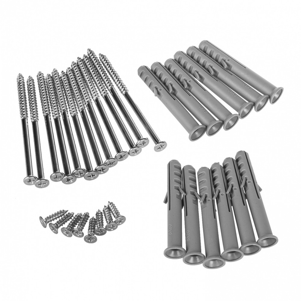 Uniwersalne, składane uchwyty ścienne, pozwalające na zamontowanie na nich półki. Zestaw uchwytów wytrzymuje obciążenie aż do 50 kg. Pomysłowy, wygodny mechanizm pozwala na złożenie uchwytów i opuszczenie półki do pozycji pionowej, dzięki czemu można zaoszczędzić miejsce w wymagającej tego sytuacji.