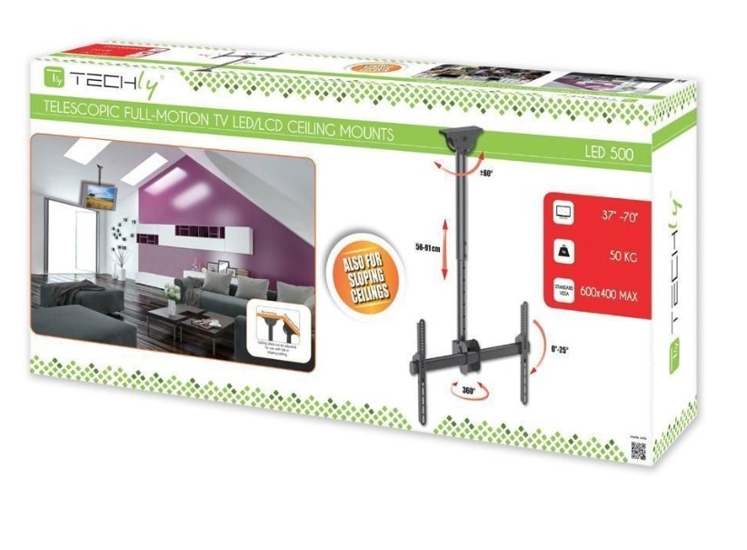 ICA CPLB-946S to teleskopowy uchwyt sufitowy o pełnym zakresie ruchu, zaprojektowany, aby zapewnić maksymalną wszechstronność i uniwersalną kompatybilność. Umożliwia pochylanie ekranów w dół lub obracanie bez użycia narzędzi. Zawiera VESA, pasującą do każdego telewizora LCD o przekątnej 37" - 70" lub monitorów o wadze do 50 kg. Regulowana wysokość dla idealnego ustawienia telewizora. Kanał do zarządzania kablami utrzymuje kable ukryte i zorganizowane.