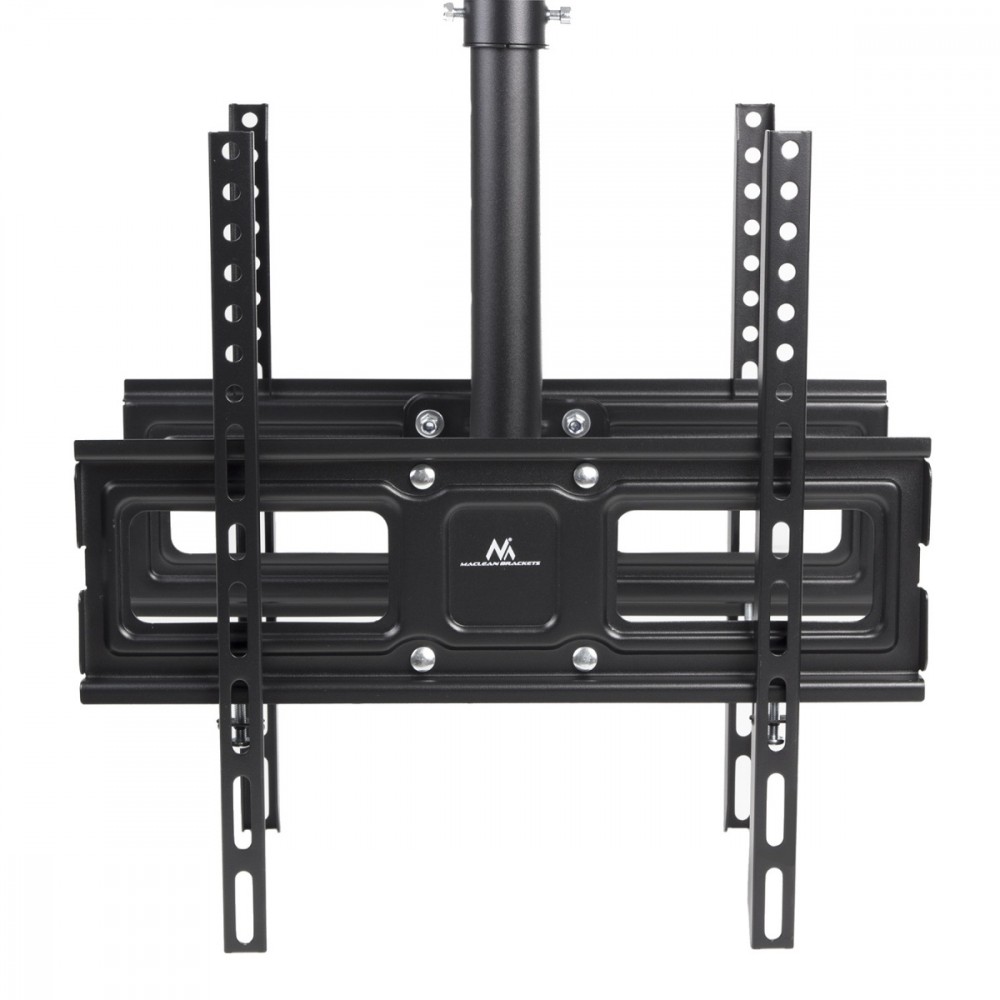 Maclean MC-944 Uniwersalny uchwyt sufitowy służący do montażu telewizorów LCD, LED oraz monitorów różnych marek o wadze do 35 kg i przekątnej ekranu 32-65 cali. Idealnie nadaje się do zamocowania telewizorów w takich miejscach jak restauracje, kawiarnie, sklepy, hotele, na lotniska, itp. Zgodność VESA Podany rozmiar ekranu jest tylko propozycją. Na uchwyt można zamontować większe telewizory, gdy nie przekraczają maksymalnej wagi oraz mieszczą się w podanym standardzie VESA. Do uchwytu bez problemu przymocujemy ekrany w standardzie VESA: 50x50, 100x100, 200x200, 200x400, 300x300, 300x400, 400x400 mm