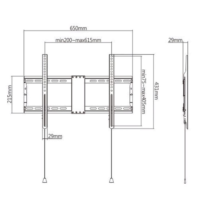 Wytrzymały stalowy uchwyt ścienny do ekranu LCD Obsługuje większość telewizorów LCD o przekątnej od 37 do 80 cali Automatyczne zamki sprężynowe z linkami szybkiego zwalniania dla łatwej instalacji Zgodność ze standardem VESA, maks. 600 mm x 400 mm Odległość od ściany: 29 mm Zawiera wszystkie niezbędne materiały instalacyjne