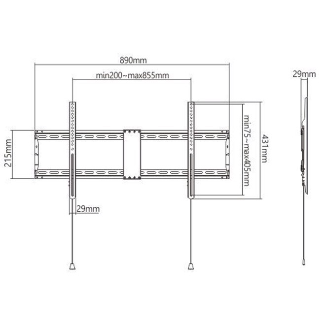 Wytrzymały stalowy uchwyt ścienny do ekranu LCD Obsługuje większość telewizorów LCD/plazmowych o przekątnej od 43 do 90 cali Automatyczne zamki sprężynowe z linkami szybkiego zwalniania dla łatwej instalacji Zgodność ze standardem VESA, maks. 800 mm x 400 mm Odległość od ściany: 29 mm Zawiera wszystkie niezbędne materiały instalacyjne