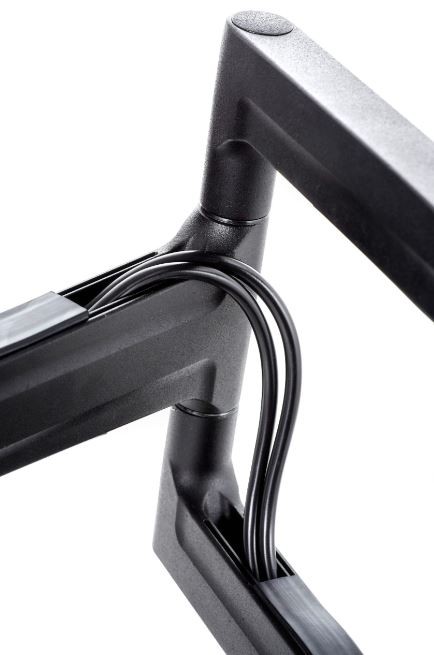 Podwójne obrotowe ramię ścienne VSM653 dedykowane jest do większych ekranów o przekątnej od 49 do 65. Konstrukcja dostosowana jest do częstych zmian położenia monitora, stanowi więc idealne rozwiązanie dla miejsc, w których monitory często zmieniają swoje położenie. Uchwyt ten zbudowany jest z aluminiowych ramion, wewnątrz których prowadzone są przewody, co zapewnia uporządkowaną instalację i estetyczny wygląd. VSM653 daje możliwość obrotu ekranu w prawo i w lewo o 90° oraz możliwość pochylenia ekranu o +11°, co pozwala na dostosowanie położenia ekranu do oczekiwań użytkownika i zwiększa komfort użytkowania. Nowoczesny design i estetyczne wykończenie mocowania ściennego Obrót ekranu prawo lewo 90°/ 90° Możliwość pochylenia ekranu +11° Trwała aluminiowa konstrukcja Prowadzenie przewodów wewnątrz ramienia Uniwersalny standard VESA
