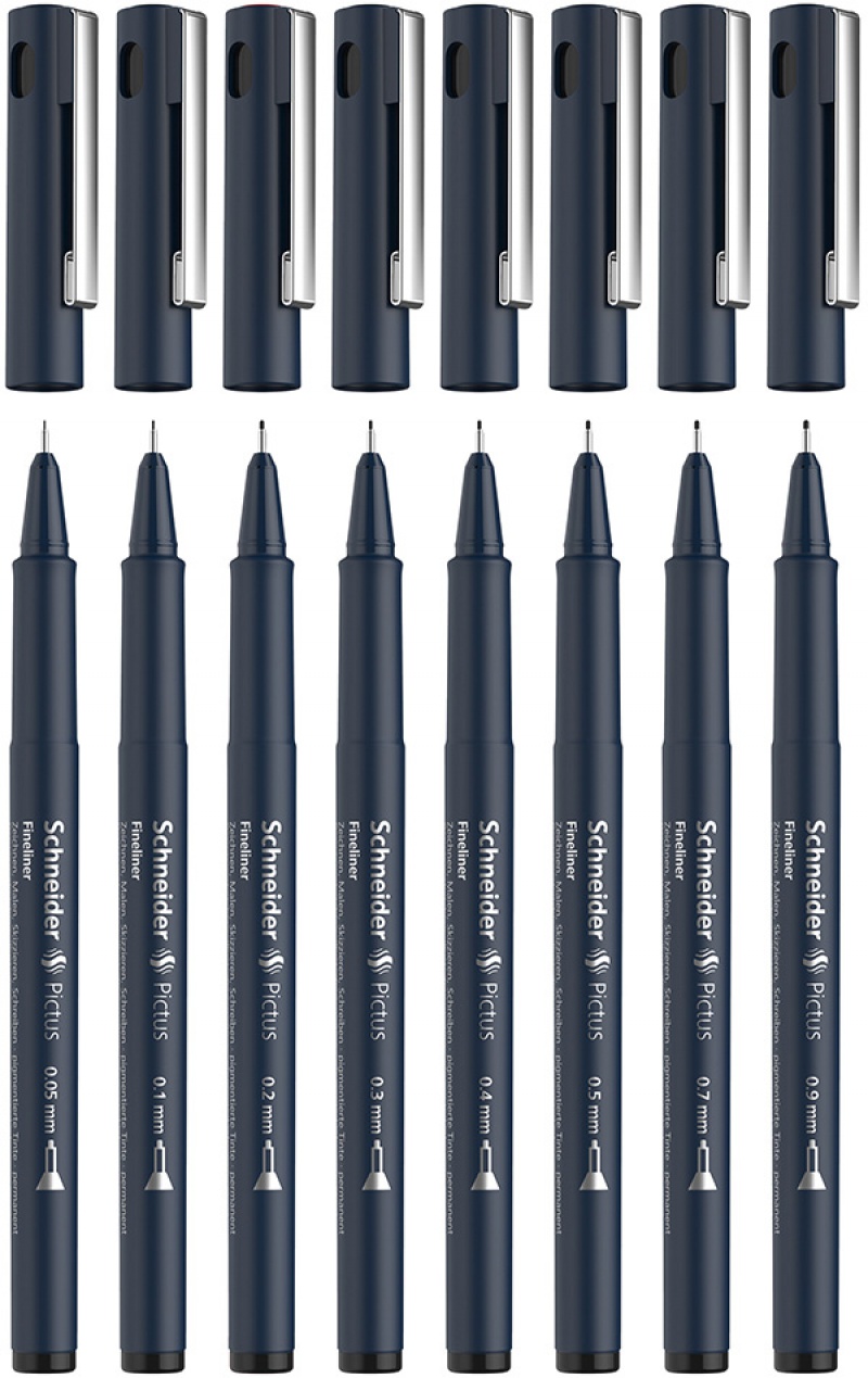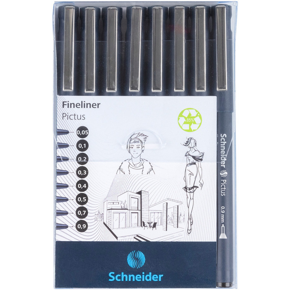 Zestaw cienkopisów SCHNEIDER Pictus, 8 szt., czarne, mix grubości