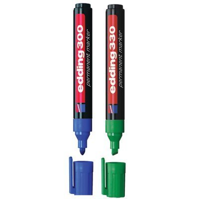 Najpopularniejsze markery niezmywalne Edding - z końcówką okrągłą (300) oraz ściętą (330). Trwały, szybkoschnący, odporny na działanie światła, wody i ścieranie tusz, bez dodatku toluenu i ksylenu. Szerokość linii pisania: 1,5 - 3 mm (300), 1-5mm (330). Nadają się do ponownego napełniania. Idealne do pisania oraz wykonywania oznaczeń na niemal wszystkich rodzajach powierzchni, również na metalu, szkle oraz tworzywach sztucznych. - Dostępne także w komplecie - 4 kolory. - jednostka sprzedazy 1 sztuka
