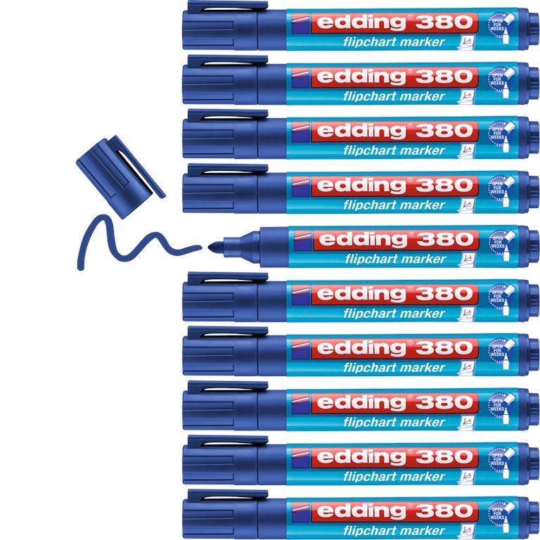Marker do flipchartów, wyposażony w tusz na bazie wody o neutralnym zapachu, który zapobiega przebijaniu tuszu na drugą stronę. Do ponownego napełniania. Wyposażony w specjalny system cap-off, który umożliwia pozostawienie markera bez zatyczki nawet do 6 tygodni bez ryzyka wyschnięcia. Okrągła końcówka o grubości linii pisania 1,5 - 3 mm (380) lub ścięta o grubości linii pisania 1 - 5 mm (383).