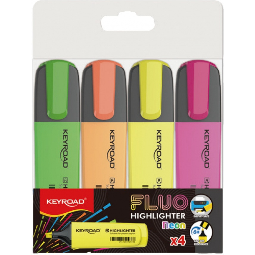Zakreślacz KEYROAD Fluo Neon, 1-5 mm, 4 szt., etui, mix kolorów