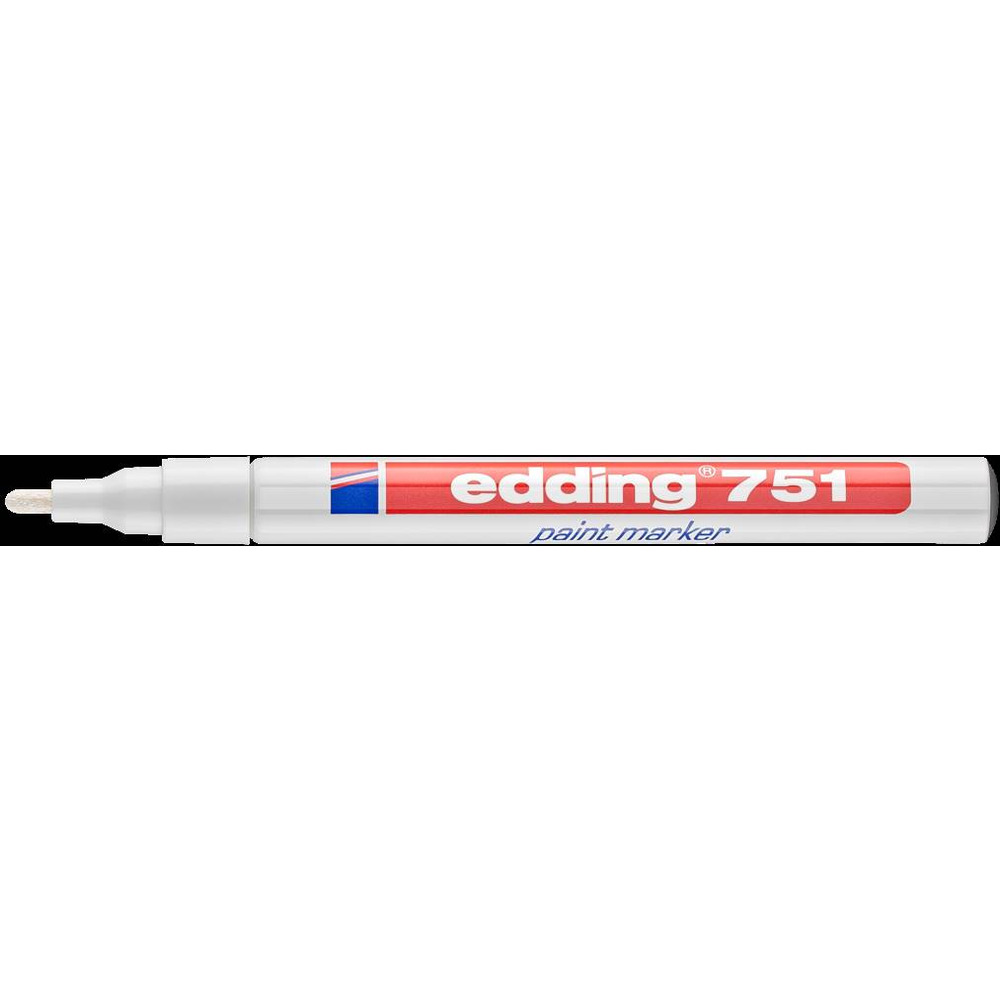 Marker lakierowy Edding 751 - marker lakierowy przeznaczony do wykonywania trwałych oznaczeń na niemal każdej powierzchni, także porowatej - tusz pigmentowy, dobrze kryjący i wysoce nieprzezroczysty, wodoodporny i szybkoschnący, odporny na ścieranie, odporny na działanie temperatury do 400 C (kolory: biały, żółty i srebrny do 1000 C) - tusz o nieagresywnym zapachu i kryciu zbliżonym do lakieru, nie zawiera toluenu i ksylenu - marker posiada system kontroli dopływu tuszu do końcówki - aluminiowa obudowa - okrągła końcówka - grubość linii pisania: 1-2 mm (751) - jednostka sprzedaży 1 sztuka
