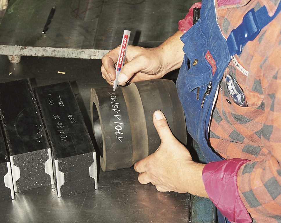 Marker lakierowy Edding - w aluminiowej obudowie (modele 750, 751), z wodoodpornym, szybkoschnącym, odpornym na ścieranie i działanie temperatury, dobrze kryjącym tuszem pigmentowym bez dodatku toluenu i ksylenu, o kryciu zbliżonym do lakieru. Marker wyposażony jest w system kontroli dopływu tuszu do końcówki. Końcówka okrągła o szerokości linii pisania: 750 - ok. 2 - 4 mm, 751 - ok.1 - 2 mm. Do wykonywania oznaczeń na niemal wszystkich powierzchniach (także porowatych). Szczególnie przydatny do znakowania powierzchni ciemnych i przezroczystych. Szeroka gama kolorystyczna - jednostka sprzedaży 1 sztuka