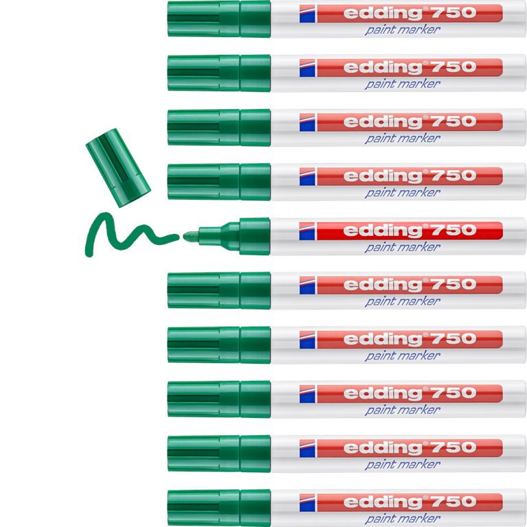Marker lakierowy Edding - w aluminiowej obudowie (modele 750, 751), z wodoodpornym, szybkoschnącym, odpornym na ścieranie i działanie temperatury, dobrze kryjącym tuszem pigmentowym bez dodatku toluenu i ksylenu, o kryciu zbliżonym do lakieru. Marker wyposażony jest w system kontroli dopływu tuszu do końcówki. Końcówka okrągła o szerokości linii pisania: 750 - ok. 2 - 4 mm, 751 - ok.1 - 2 mm. Do wykonywania oznaczeń na niemal wszystkich powierzchniach (także porowatych). Szczególnie przydatny do znakowania powierzchni ciemnych i przezroczystych. Szeroka gama kolorystyczna - jednostka sprzedaży 1 sztuka
