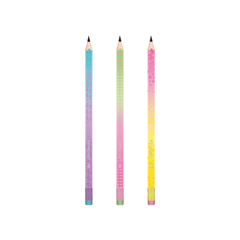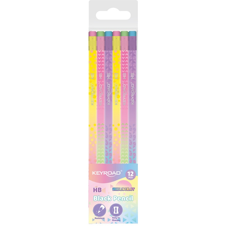 Ołówek drewniany KEYROAD, z gumką, opalizująca obudowa, HB, 12 szt., zawieszka, mix kolorów