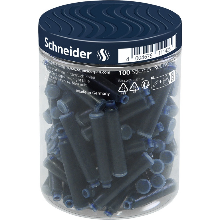 Naboje do piór SCHNEIDER, plastikowy słoik, 100 szt., granatowe
