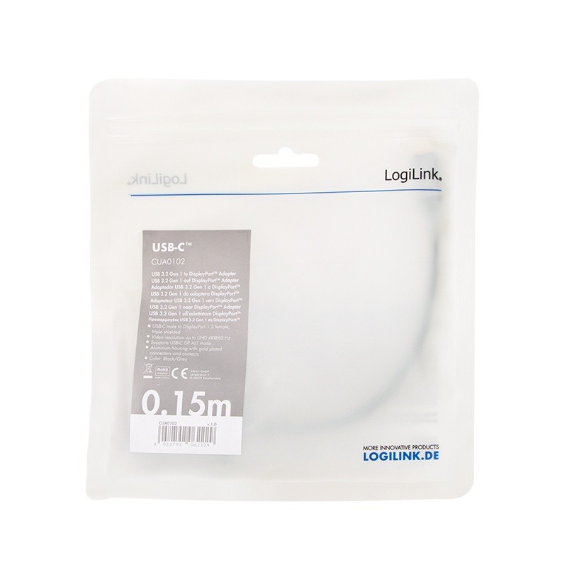 Złącze 1: USB-C (męskie) Złącze 2: DisplayPort (żeńskie) Zgodność z USB 3.2 Gen1 SuperSpeed Podłączone urządzenia muszą obsługiwać alternatywny tryb USB-C DP/HDMI Rozdzielczość: Ultra HD do 4K/60 Hz (3840x2160) 2x ekranowany Obudowa aluminiowa