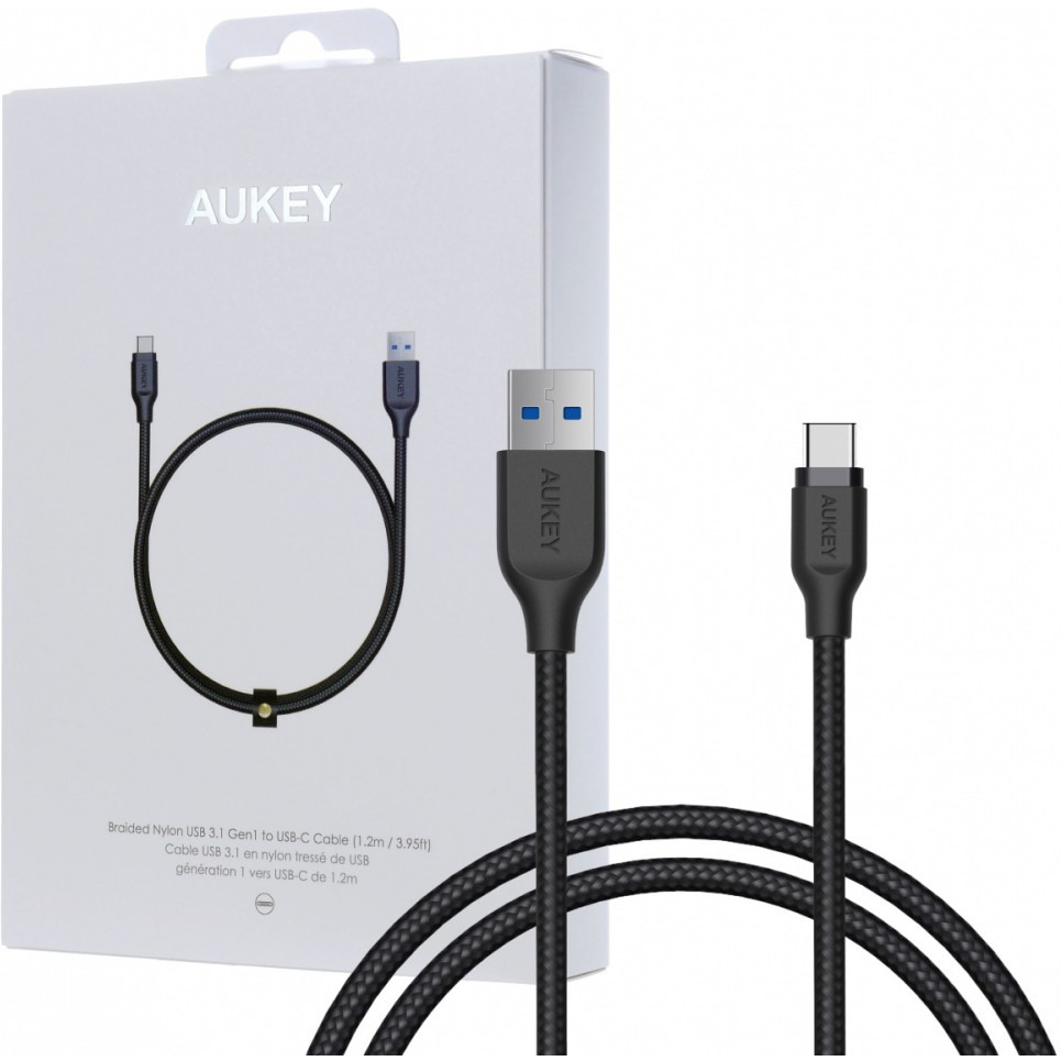 AUKEY CB-AC1 nylonowy ultraszybki kabel Quick Charge USB 3.1 - USB C 1.2m czarny