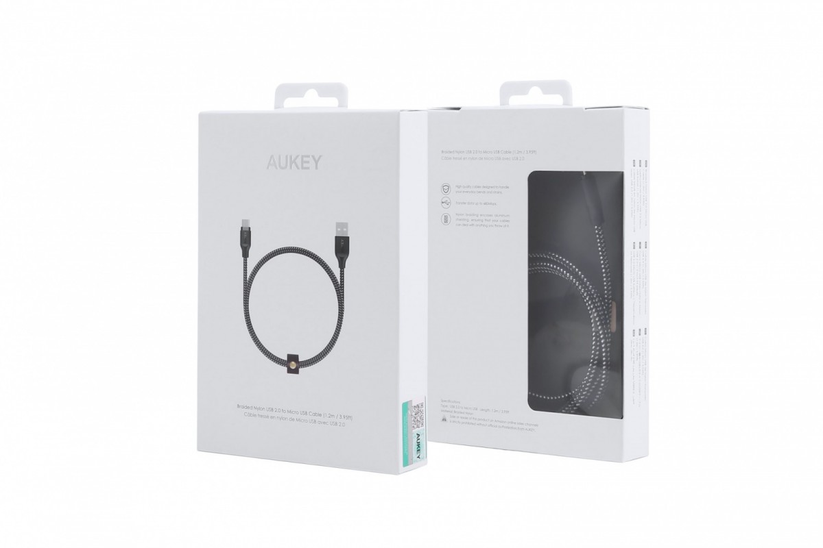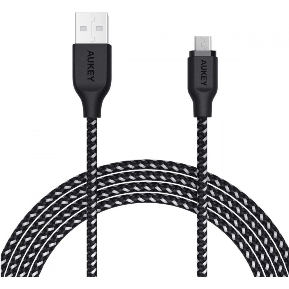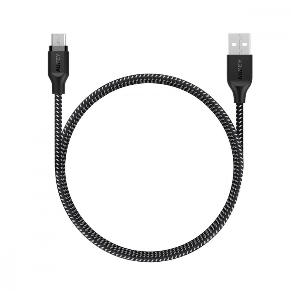 AUKEY CB-AM1 Black szybki nylonowy kabel Quick Charge micro USB-USB | 1.2m | 480 Mbps Bardzo szybkie kable do synchronizacji lub ładowania Kable spełniają wymagania Quick Charge Transfer danych do 480 Mbps Wzmocniona żywotność > 4000 cykli Pozłacane złącza Wytrzymała nylonowa plecionka Kindle Fire Wielowarstwowe ekranowanie