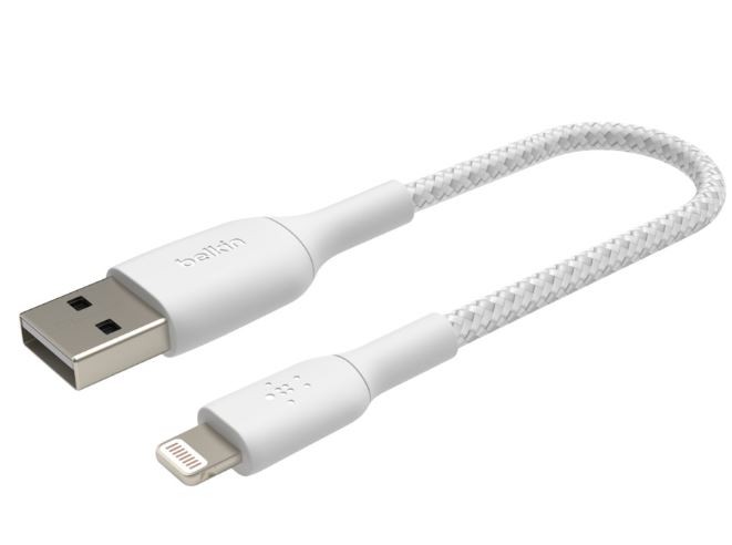 Kabel Braided USB- Lightning 15cm biały