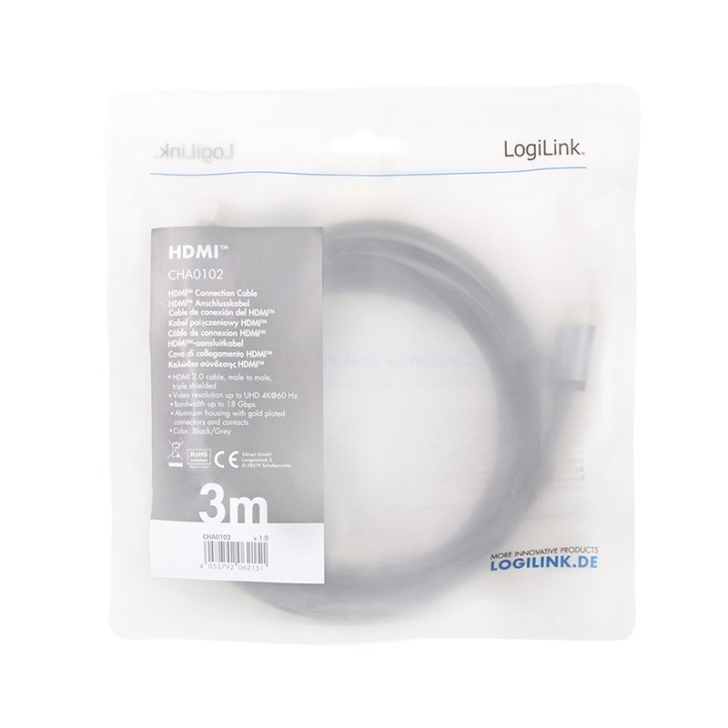 Złącze 1: HDMI-A (męskie) Złącze 2: HDMI-A (męskie) Zgodny z HDMI 2.0 Premium High Speed z Ethernetem Rozdzielczość: Ultra HD do 4K/60 Hz (3840x2160) Szybkość transmisji danych: do 18 Gb/s Obsługuje: HEC, EDID, HDCP, ARC, HDR, CEC, 3D Obsługuje: wielostrumieniowe audio/wideo Obsługuje: 32 kanały / 1536 kHz formaty audio Obsługuje: Dolby Digital, DTS, MPEG, DVD audio, SACD, Dolby Digital Plus, True HD i dane audio dts-HD 3x ekranowany Obudowa aluminiowa