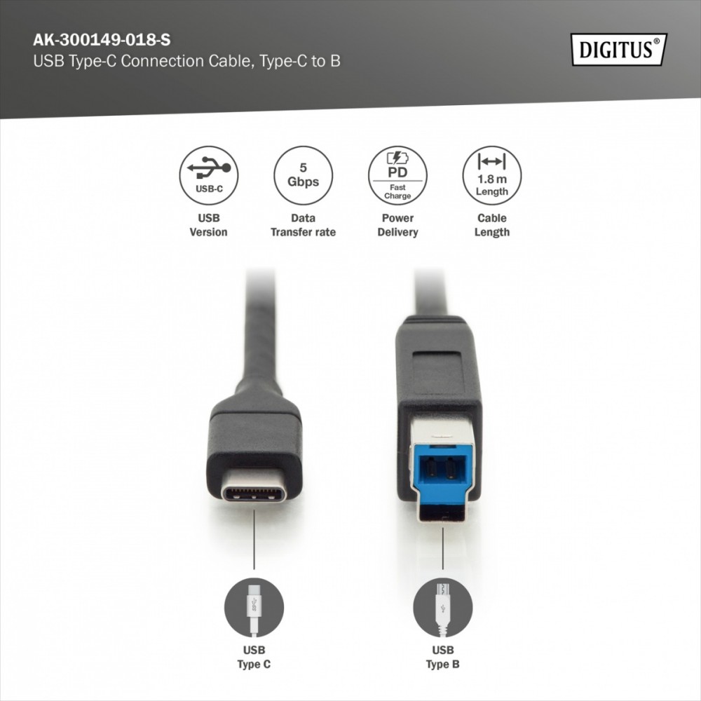 Kabel połączeniowy USB 3.0 SuperSpeed 5Gbps Typ USB C/B M/M Power Delivery czarny 1.8m