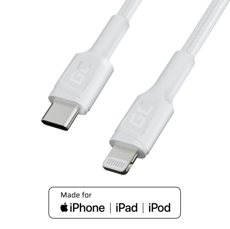Kabel Green Cell Power Stream USB Type C - Ligthning 1m - Bezpośrednie ładowanie i synchronizowanie iPhone'a z najnowszymi MacBookami / iPadami USB-C oraz do 2,5x szybsze ładowanie PD to zaledwie ułamek możliwości, które stają się możliwe Wsparcie szybkiego ładowania Power Delivery 18W pozwala naładować smartfony iPhone SE (2020) / 11 / 11 Pro / XS / X do 50% w zaledwie 30 minut! Kabel wspiera również standardowe ładowanie dla urządzeń m.in. iPhone 7 / 6S / 6, iPad Air / mini oraz iPod GC Power Stream posiada oficjalny certyfikat Apple MFi oraz chip C94, co zapewnia perfekcyjne działanie ze wszystkimi kompatybilnymi urządzeniami Apple. Zapomnij o problemach z niecertyfikowanymi akcesoriami Niezrównana wytrzymałość GC Power Stream to efekt zastosowania: niezwykle odpornego na przetarcia oplotu, metalowych osłon skutecznie chroniących przed wyłamaniem obu wtyczek oraz kilkustopniowej ochrony przewodów z użyciem kevlarowych włókien
