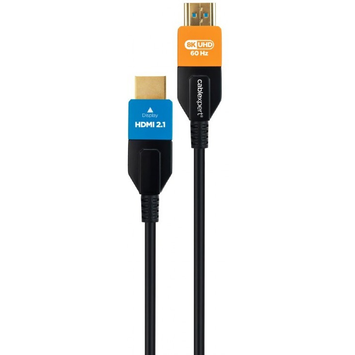 Kabel Ultra High speed HDMI AOC Series 8K 30M Aktywny kabel optyczny HDMI (AOC) wykorzystuje technologię światłowodową do przesyłania cyfrowego sygnału HDMI. Oznacza to, że sygnał może być przenoszony znacznie dalej niż przy użyciu tradycyjnego kabla miedzianego (do 100 m) i zmniejsza ryzyko zakłóceń EMI / RFI. Kable HDMI AOC mają również dedykowane przewody miedziane w środku, więc nie ma zewnętrznego źródła zasilania wymagany. Kabel HDMI AOC wykorzystuje technologię światłowodową - zmniejsza ryzyko zakłóceń EMI / RFI w środowiskach o wysokim poziomie zakłóceń. Trwały, wyjątkowo cienki pleciony kabel wysokiej jakości ze stykowymi metalowymi złączami. Mniejsza średnica kabla w porównaniu z tradycyjnymi miedzianymi kablami HDMI. Obsługuje rozdzielczości 4K UHD przy 60 Hz.