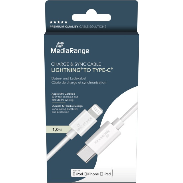 Kabel USB-C MEDIARANGE Apple Lightning, 1m, biały