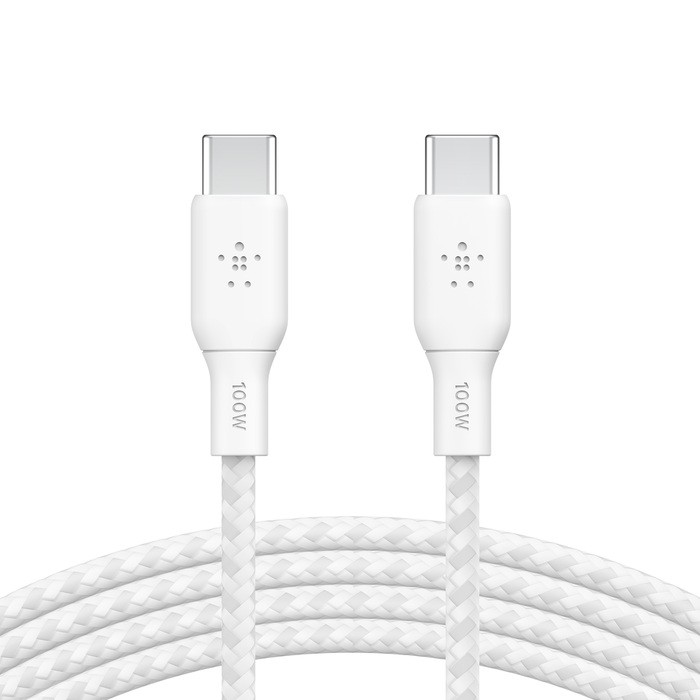 Kabel w oplocie USB-C do USB-C 100W 2m biały